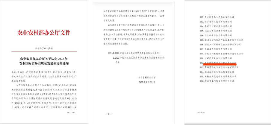 酒泉敦煌種業(yè)百佳食品有限公司被農(nóng)業(yè)農(nóng)村部認定為2022年農(nóng)業(yè)國際貿(mào)易高質量發(fā)展基地