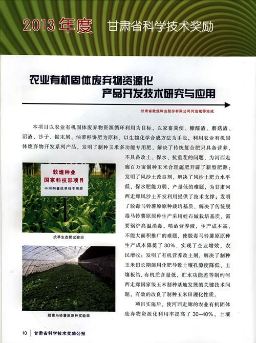 “農(nóng)業(yè)有機固體廢棄物資源化產(chǎn)品開發(fā)技術研究與應用”喜獲甘肅省技術發(fā)明一等獎